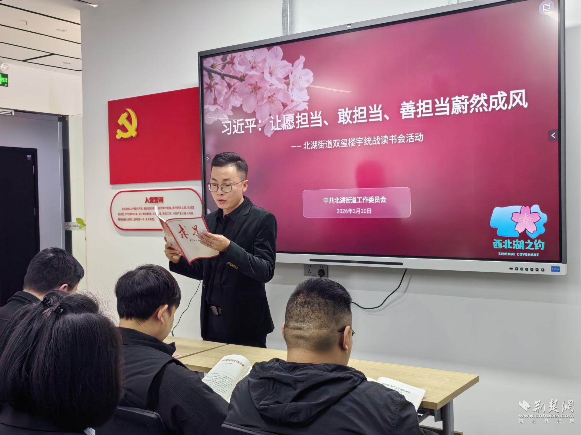 在常青街道,CAAD首地財(cái)富中心內(nèi)的“后襄河畔·樓宇課堂”成為白領(lǐng)身邊的學(xué)習(xí)陣地。銀發(fā)宣講團(tuán)成員以智能手環(huán)、掃碼點(diǎn)餐等生活化案例切入,深入淺出解讀“新質(zhì)生產(chǎn)力”,讓抽象概念變得可感可知。唐家墩街道將“兩會(huì)知識快問快答”嵌入主題黨日,以互動(dòng)競賽激發(fā)參與熱情,推動(dòng)學(xué)習(xí)從“要我學(xué)”向“我要學(xué)”轉(zhuǎn)變。北湖、新華等街道則通過樓宇讀書會(huì),把理論學(xué)習(xí)融入交流分享,在書香氛圍中凝聚思想共識。