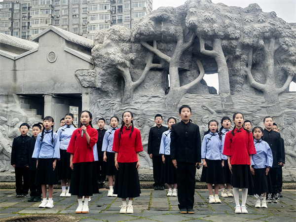 首義烽火石刻前齊誦《少年中國說》。 通訊員供圖