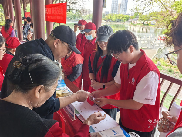 此外,紅十字志愿服務(wù)隊聯(lián)合家庭醫(yī)生團(tuán)隊開展心肺復(fù)蘇、AED使用等急救技能培訓(xùn),醫(yī)護(hù)人員講解春夏季傳染病防控與科學(xué)膳食知識,消殺人員現(xiàn)場演示“翻盆倒罐”、規(guī)范用藥等病媒防制實操技巧。長江大學(xué)地球科學(xué)學(xué)院大學(xué)生志愿者也主動參與,在紫陽湖沿岸及公園人流密集區(qū),通過趣味互動普及生態(tài)環(huán)保、垃圾分類知識,引導(dǎo)居民樹立“每個人是自己健康第一責(zé)任人”的理念。