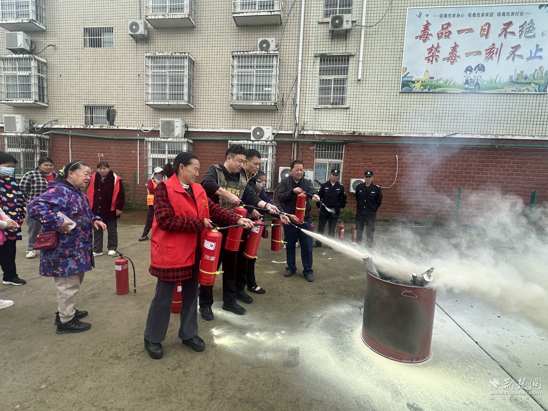 消防實(shí)操區(qū)居民實(shí)操滅火器。通訊員供圖