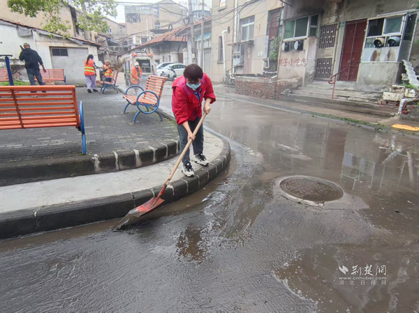 荊楚網(wǎng)(湖北日?qǐng)?bào)網(wǎng))訊(通訊員 朱凡)受近期強(qiáng)降雨影響,武漢市武昌區(qū)白沙洲街道堤?hào)|社區(qū)部分路段出現(xiàn)下水道反涌、淤泥堆積等情況,對(duì)居民正常出行造成不便。為盡快恢復(fù)社區(qū)整潔環(huán)境,阻斷病菌蚊蟲滋生,4月10日,白沙洲街道迅速組織開展雨后環(huán)境衛(wèi)生集中清潔消殺行動(dòng),志愿者、社區(qū)工作者、環(huán)衛(wèi)工人、城管隊(duì)員等30余人參與整治。