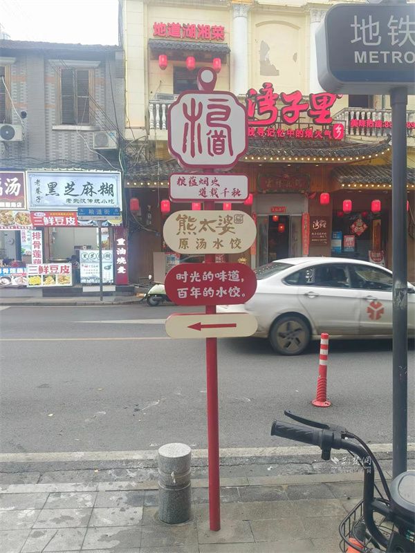 為幫助食客高效探索糧道街“美食宇宙”,街區(qū)在主要入口,設(shè)置了信息豐富的美食總覽立牌,標(biāo)注出特色店鋪。街巷內(nèi)部,則布設(shè)了風(fēng)格統(tǒng)一、指向明確的路口美食導(dǎo)向牌,形成清晰的尋味指引網(wǎng)絡(luò),實現(xiàn)“一圖在手,吃遍糧道”。這些美食導(dǎo)覽圖有效引導(dǎo)了人流,分散了聚集壓力,也讓美食探索變成了一場輕松有趣的“尋寶”之旅。