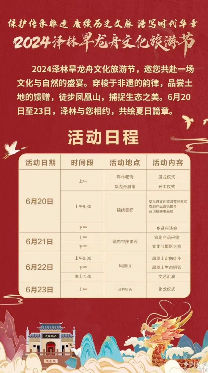 為了傳承這一國家級非遺,助推“澤林旱龍舟文化旅游品牌”的建設(shè),今年已是澤林鎮(zhèn)舉辦“澤林旱龍舟文化旅游節(jié)”的第四個年頭。澤林鎮(zhèn)始終堅持進(jìn)一步深挖文化魅力,堅定走好“以商養(yǎng)文、以文促商、文商互益”的文商融合發(fā)展新路子。
