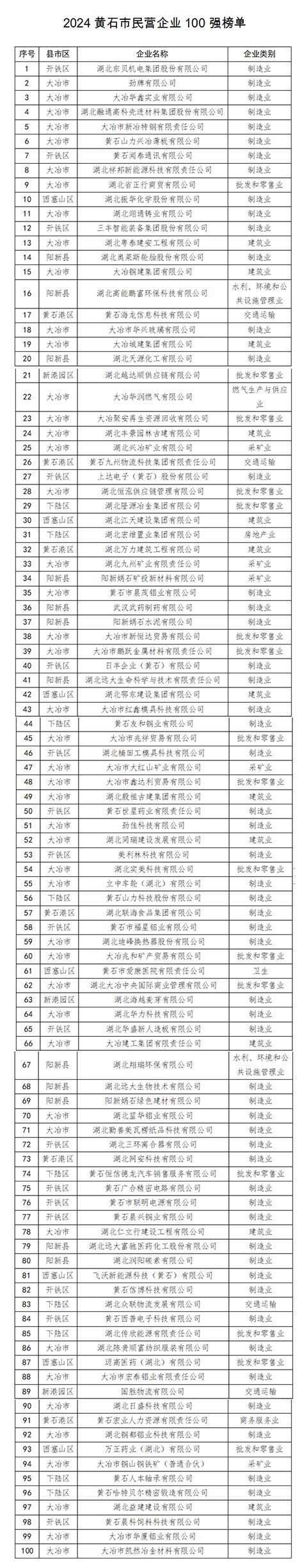 據(jù)悉,該榜單按照“湖北省民營企業(yè)100強”系列榜單排序方法,以2023年度企業(yè)營收總額(黃石地區(qū))作為主要指標,對自愿參加申報的民營企業(yè)進行排序,并征求相關(guān)部門意見建議而形成。
