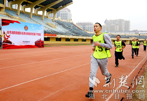 圖為開展3000米跑科目現(xiàn)場。 通訊員 朱燕林攝