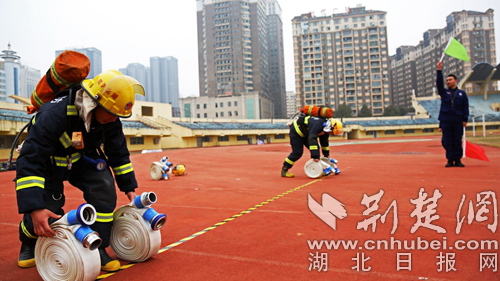 圖為開展60米肩梯跑科目現(xiàn)場。 通訊員 朱燕林攝
