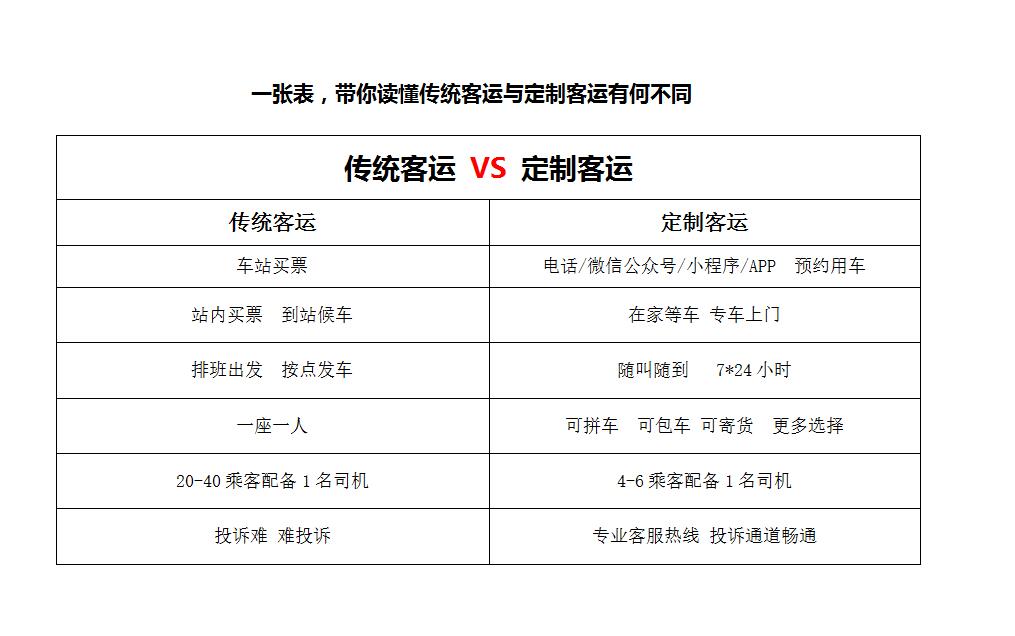 與傳統(tǒng)客運(yùn)大巴相比,定制客運(yùn)采用的是更為靈活的5座轎車或7座商務(wù)車,可以實(shí)現(xiàn)點(diǎn)對點(diǎn)、門對門的上門接送服務(wù),減少旅客倒車、候車之苦。并且隨叫隨到,每日24小時(shí)在線,所有服務(wù)均提供正規(guī)發(fā)票和保險(xiǎn)保障。