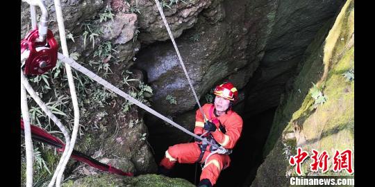 根據(jù)現(xiàn)場(chǎng)情況,指揮員立即利用救援繩索做好安全支點(diǎn),消防員點(diǎn)降至洞底查看被困者情況,所幸洞內(nèi)空氣流暢,被困者無二次傷害的危險(xiǎn)。消防員利用隨身攜帶的全身吊帶將被困者固定好后,經(jīng)洞外消防員齊力,經(jīng)過20多分鐘救援,被困人員被成功營救出山洞。