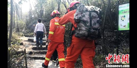 消防員帶上救援工具,徒步半個(gè)多小時(shí)趕赴事發(fā)現(xiàn)場(chǎng)開展救援 朱燕林 攝