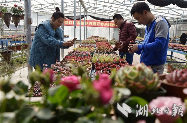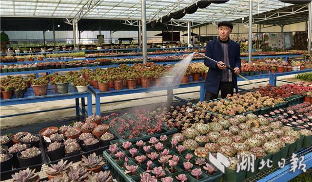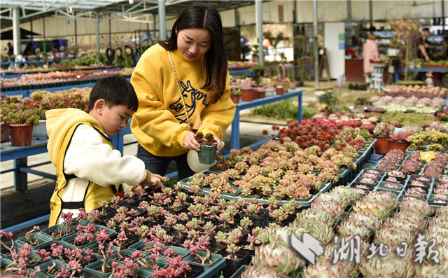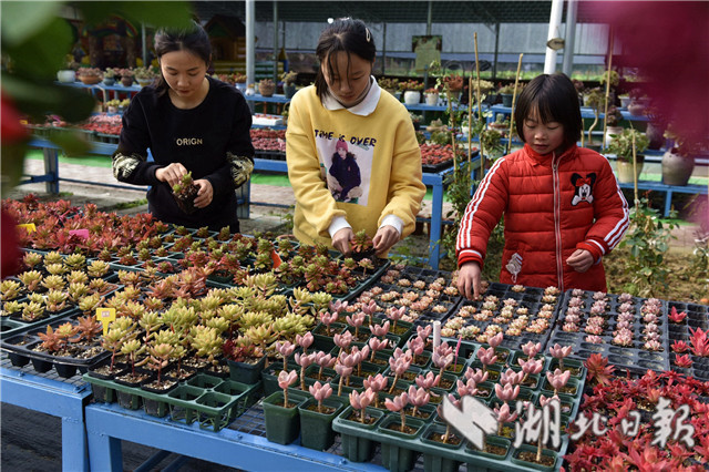 3月10日,在湖北省通城縣馬港鎮(zhèn)界上村東山大屋多肉植物種植大棚社員忙著移栽、管理、銷售多肉植物。連日來,湖北省通城縣馬港鎮(zhèn)界上村東山大屋多肉植物種植花卉大棚里春意盎然,五顏六色的多肉小盆栽連綿成花海,顏色豐富多彩,吸引游客拍照、購(gòu)買,開展親子活動(dòng)。