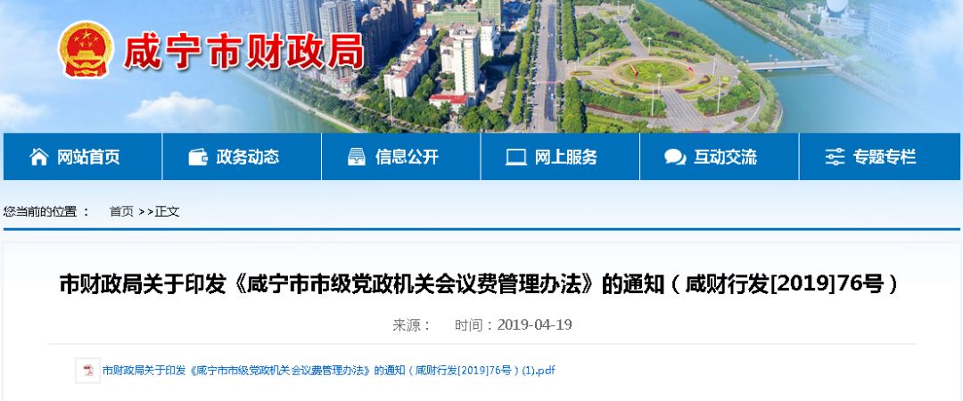 4月19日,咸寧市財政局發(fā)布重新修訂的《咸寧市黨政機關會議費管理辦法》,對厲行勤儉節(jié)約、精簡會議活動等方面內容作了進一步規(guī)范、細化和完善,已自2019年4月8日起實施。