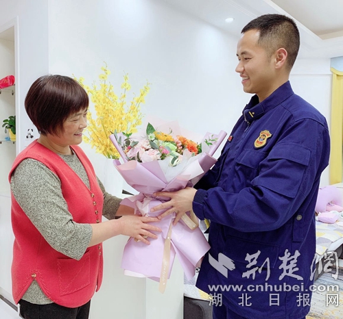 “媽媽,這些年您辛苦了,感謝您的養(yǎng)育、教育之恩,快到母親節(jié)了,在這個(gè)特殊的日子里,今年能親手送上一束鮮花您,希望您天天開(kāi)心貌美如花……”母親節(jié)即將到來(lái)之際,咸寧特勤中隊(duì)副中隊(duì)長(zhǎng)張衡出差時(shí)利用午休時(shí)間回家送上一份母親節(jié)的禮物。