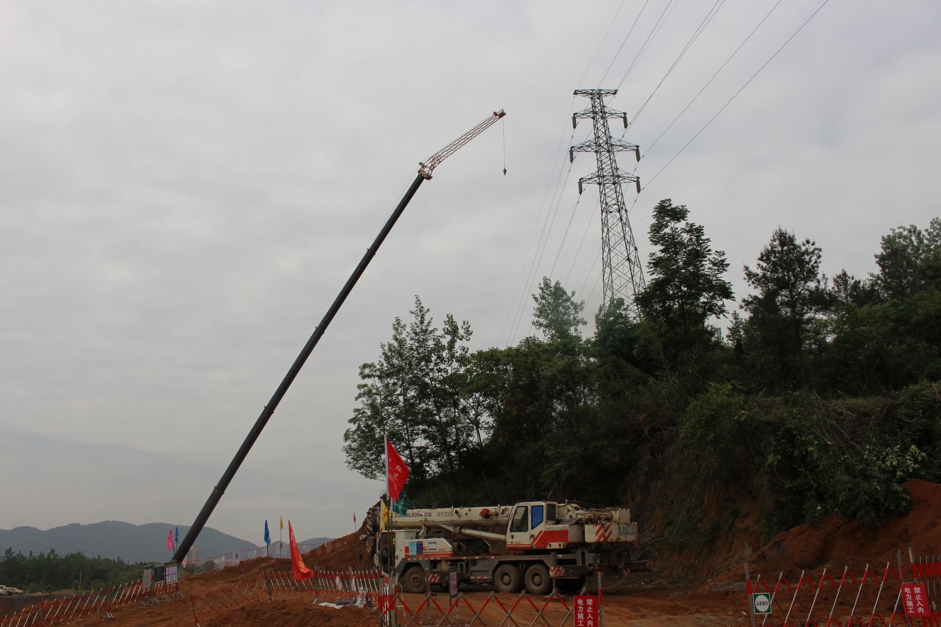 5月8日早上6點,搶修人員現(xiàn)場通過吊車將桿塔錨固,對塔上導線進行拆除等系列措施進行搶修??此坪唵蔚墓ぷ?,在30米的高空操作費時費力,雖然天氣微涼,但是電力搶修人員的汗水早已浸透衣衫。