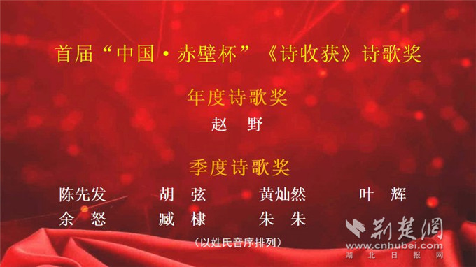 赤壁市委副書記、市長董方平表示,赤壁市是湖北的“南大門”,三國赤壁是代表中國文化的一張重要名片,這里孕育出了著名詩人鄒狄帆、葉文福及其他文化名人。此次頒獎(jiǎng)對于培養(yǎng)詩歌人才,擴(kuò)大學(xué)術(shù)交流,將起到很好的推動(dòng)作用,也將成為赤壁文化的一張亮麗名片。據(jù)介紹,《詩收獲》詩歌獎(jiǎng)?lì)C獎(jiǎng)典禮每年一屆,接下來的兩屆仍將在赤壁舉行。