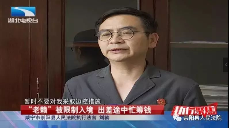 崇陽縣法院執(zhí)行法官劉勃:“法院現(xiàn)在對失信被執(zhí)行人有個(gè)措施,就是限制出入境,我就跟他講,我說你回不來了。”