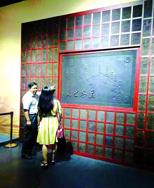 1、磚茶壓制的萬(wàn)里茶道屏風(fēng)