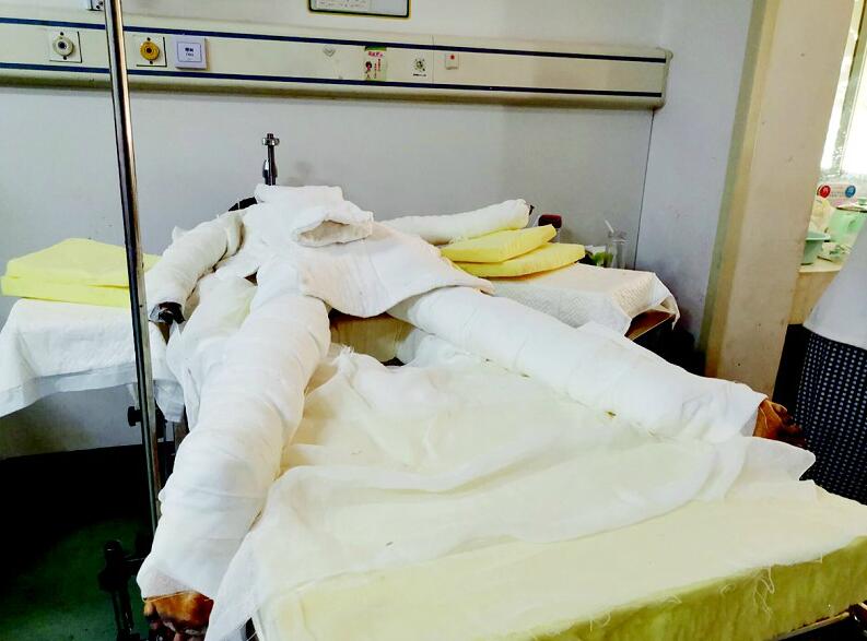 在李英珍的印象里,女兒婷婷是個活潑開朗的孩子。去年暑假,婷婷報了興趣班學(xué)舞蹈,跳得很開心,原準(zhǔn)備今年暑假繼續(xù)學(xué)舞蹈,卻遭此橫禍。醫(yī)院檢查結(jié)果顯示,婷婷全身燒傷面積達(dá)65%,四肢受傷最重,以后可能再也沒法跳舞了。