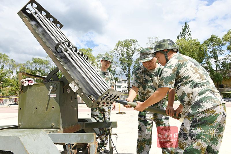 26日,在崇陽縣港口鄉(xiāng)中學(xué),該縣氣象局工作人員正在此架設(shè)火箭炮,守候?qū)α髟茖樱プ∮欣麜r機(jī)實施人工增雨抗旱作業(yè)。