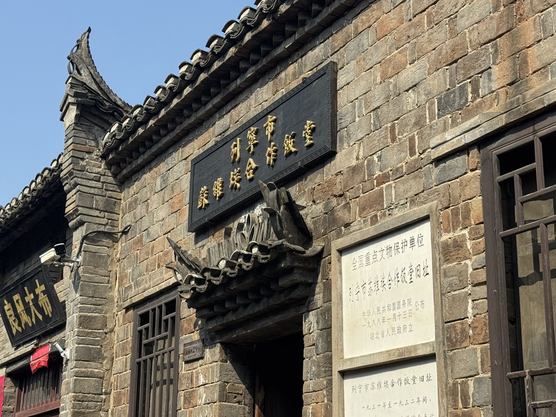 “小小黃安,人人好漢。銅鑼一響,四十八萬(wàn)。男將打仗,女將送飯……”沿著紅安縣七里坪鎮(zhèn)長(zhǎng)勝街老街的青石板路一路探訪(fǎng),從街口到街尾只有400米長(zhǎng),卻有多個(gè)“國(guó)寶”單位:紅四方面軍指揮部舊址、七里坪工會(huì)舊址、鄂豫皖蘇維埃銀行、蘇維埃合作飯?zhí)?、鄂豫皖中西藥局等重要革命遺址……