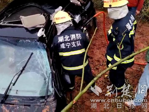 荊楚網消息(通訊員 朱燕林 朱濤)3月28日11時4分,湖北省咸寧市通山縣大畈鎮(zhèn)隱水洞附近貨車與小車相撞2人被困,接警后,通山縣消防中隊出動1輛消防車、7名消防員趕赴現(xiàn)場救援。