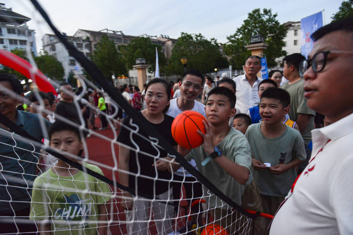 一分鐘跳繩活動現(xiàn)場“繩”采飛揚,參賽者五人一組,各施技藝,場面歡樂又熱鬧;踢毽子區(qū),選手們閃轉(zhuǎn)騰挪,五彩繽紛的毽子上下翻飛,畫出一條條優(yōu)美的弧線;一分鐘投籃比賽,選手們對著籃球機左右開弓,瘋狂進球,屏幕上的分數(shù)跳跳跳,圍觀的居民直呼“高手在民間” 。