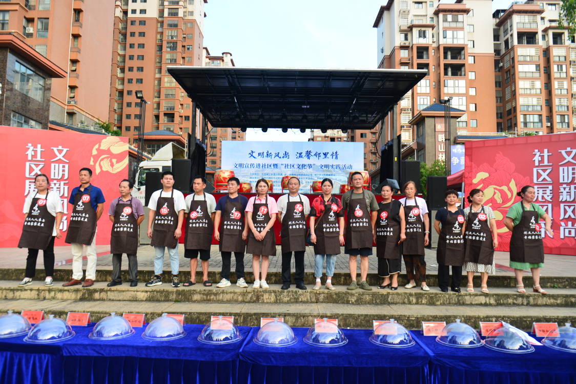 游人如織,笑靨如花。7月5日傍晚時分,咸寧市“文明新風尚 溫馨鄰里情”文明宣傳進社區(qū)暨“社區(qū)文化節(jié)”文明實踐活動在永安街道文筆路社區(qū)青龍山公園廣場正式啟動,社區(qū)居民 掌勺烹“大餐”,豐富多彩的活動讓現(xiàn)場的觀眾忍不住贊嘆,“這樣的活動對味兒!”