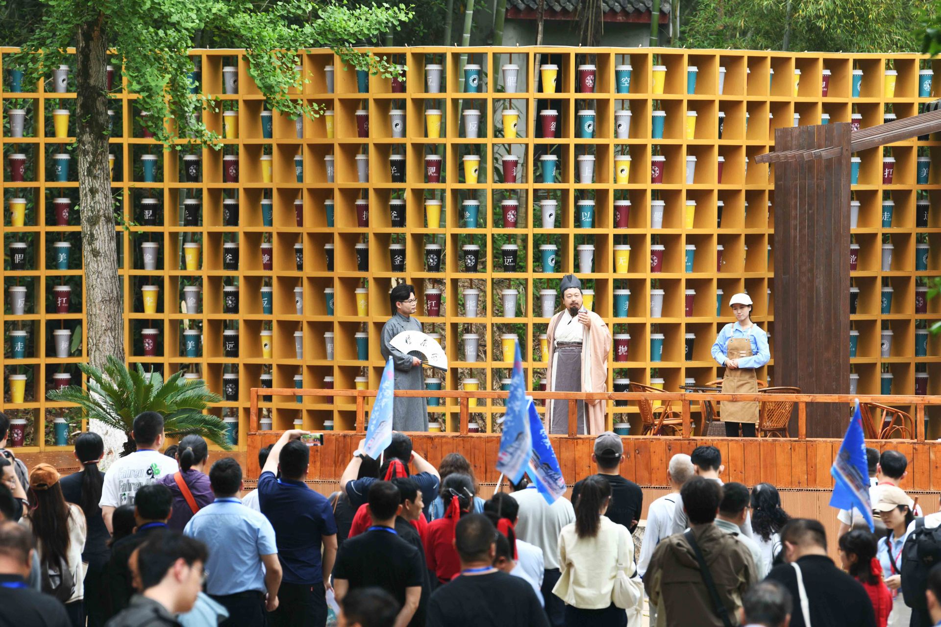 4月26日晚,三國赤壁古戰(zhàn)場(chǎng)景區(qū),《赤壁·借東風(fēng)》實(shí)景演藝劇全球首演。一名“說書人”用現(xiàn)代人的口吻,串起一部三國與現(xiàn)代的穿越劇:舞臺(tái)上,演員、道具、光影重現(xiàn)“草船借箭”“苦肉計(jì)”“空城計(jì)”等歷史典故;看臺(tái)上,游客化身將士,隨劇情節(jié)奏拍打赤壁非遺——腳盆鼓(相傳為孫劉聯(lián)軍赤壁之戰(zhàn)鼓舞士氣的樂器)……現(xiàn)場(chǎng),觀眾與演員深度融合,沉浸式體驗(yàn)三國英雄氣概,仿佛一場(chǎng)跨越千年的對(duì)話。