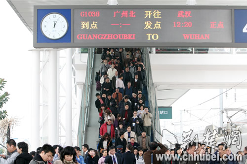 中午11時(shí)46分,列車?繌V州北站,歷時(shí)僅2小時(shí)46分鐘。在站臺(tái)上,記者遇到了一位帶著小孩的江西九江乘客,她興奮告訴記者,“我是慕名專程到武漢坐高鐵快車到廣州探親的,沒想到不到3個(gè)小時(shí)就到了,簡直不敢想!