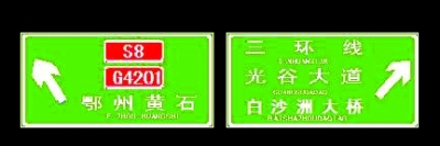武黃高速進入三環(huán)線(由高新往青山、漢口方向)設(shè)有4組指路牌,指向標(biāo)明的都是“三環(huán)線東”,但“三環(huán)線東”沒有明確的定義,容易產(chǎn)生誤導(dǎo)。