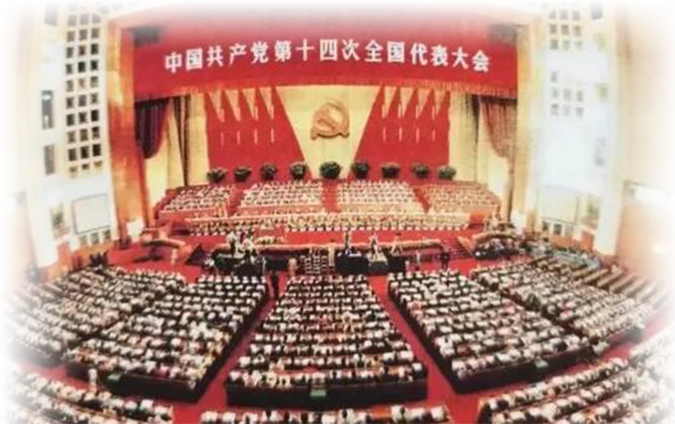 1992年10月12日至18日,中國共產(chǎn)黨第十四次全國代表大會在北京舉行。大會正式代表1989人,特邀代表46人,代表著全國5100多萬名黨員。大會選舉產(chǎn)生了由委員189人、候補委員130人組成的中央委員會和由委員108人組成的中央紀律檢查委員會。