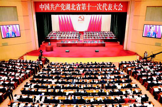 2017年6月25日至29日,中國共產黨湖北省第十一次代表大會在武昌召開。出席會議代表849人。蔣超良作題為《高舉旗幟 牢記囑托 全面建成小康社會 開啟湖北“建成支點、走在前列”新征程》的報告。大會提出堅持以人民為中心的發(fā)展思想,堅持穩(wěn)中求進工作總基調,堅持以解放思想為先導、改革創(chuàng)新為動力,統(tǒng)籌推進“五位一體”總體布局,協(xié)調推進“四個全面”戰(zhàn)略布局,聚焦“四個著力”,加快轉型升級,持續(xù)建設“五個湖北”,全面建成小康社會,為“建成支點、走在前列”而奮斗。大會選舉產生中共湖北省第十一屆委員會、中共湖北省第十一屆紀律檢查委員會。29日下午,省委十一屆一次全體會議選舉產生了中國共產黨湖北省第十一屆委員會常務委員會委員,蔣超良為省委書記。